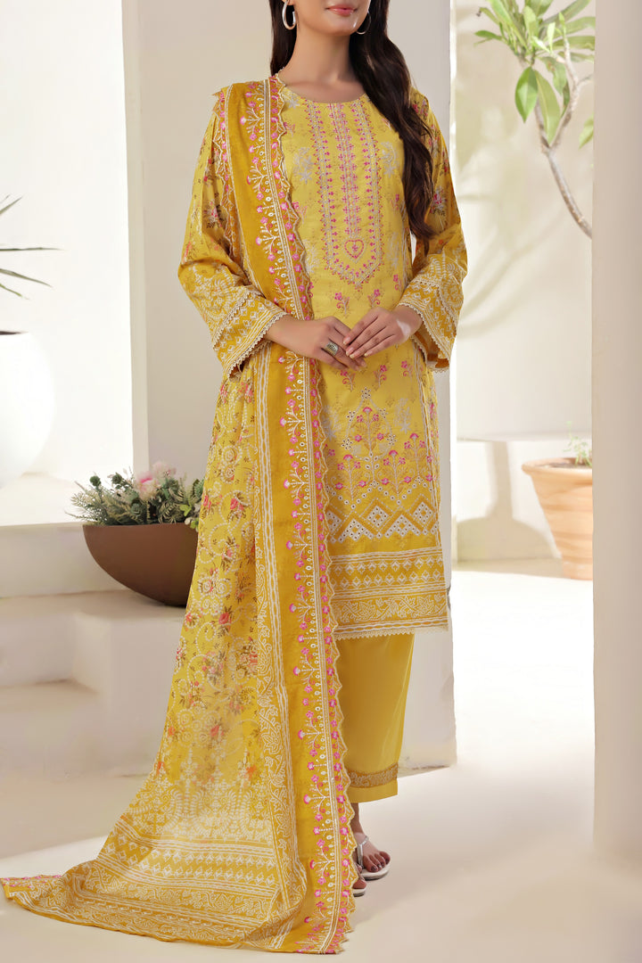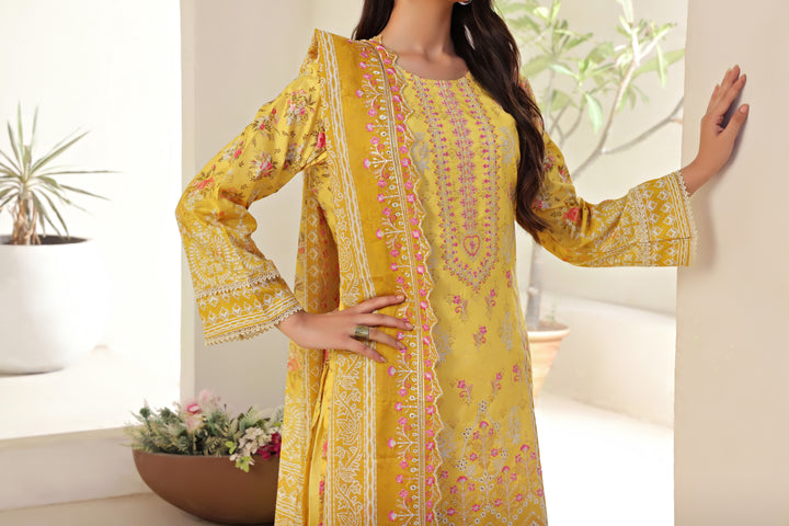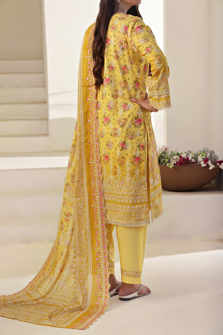 3 PIECE - DIGITAL PRINTED EMBROIDERED CHIKANKARI LAWN SUIT
