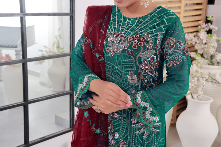 Discover timeless elegance with our Chiffon Heavy Embroidered Suit, designed to make a statement at any special occasion. This luxurious ensemble features: